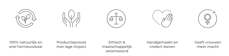 Alle producten zijn handgemaakt van 100% natuurlijke en milieuvriendelijke materialen.